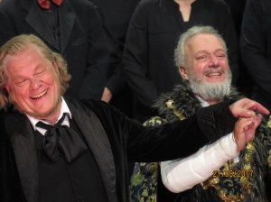 Barrie Kosky “the agent provocateur par excellence” is a 50-year old Australian – known to have introduced himself in the past as “the Jewish Gay Kangaroo” – is an entertainer of extravagant theatrical imagination, describing his style as “high queer camp.” This enfant terrible is not afraid of going too far following his theatrical instincts, in his own words, “an unashamed mixture of kitsch, spectacle and provocation.” It is a staging that exposes some troubling realities juxtaposed with the breathtakingly beautiful music. Kosky, fully aware of Wagner’s statement, “my life is a drama I wrote”, orchestrates some scenes where the audience is forced to judge Wagner and his society. He obviously loves Wagner who comes out the big winner in the end. He argues the case for great German art before he returns to lead a full orchestra on stage with the awaiting Cosima/Eva at his feet. There is no traditional shoe making shop, just Hans Sachs occasionally walking around with one shoe in his hand, enough to imagine him as a cobbler.
